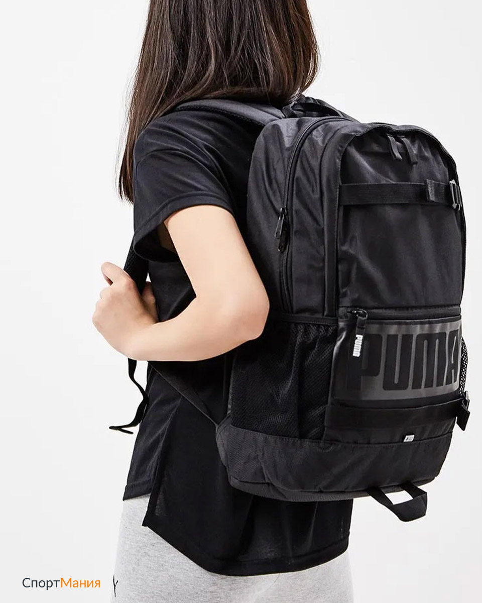 - Большой городской рюкзак PUMA Deck отличается горизонтально расположенными ремнями с пряжками на фронтальной части – с их помощью вы можете закрепить свой скейтборд.
