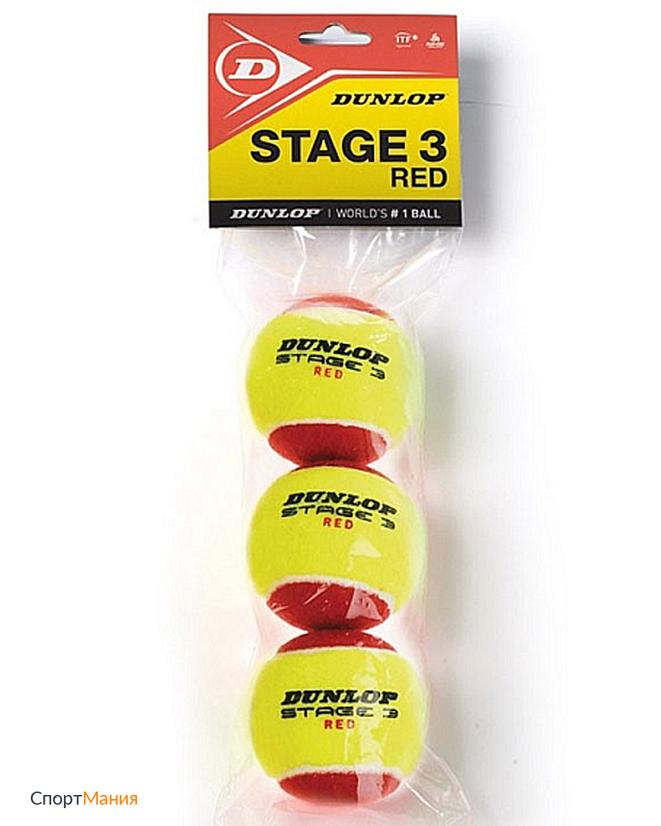 605053 Мячи для большого тенниса Dunlop Stage 3 (RED) неоновый-желтый, красный